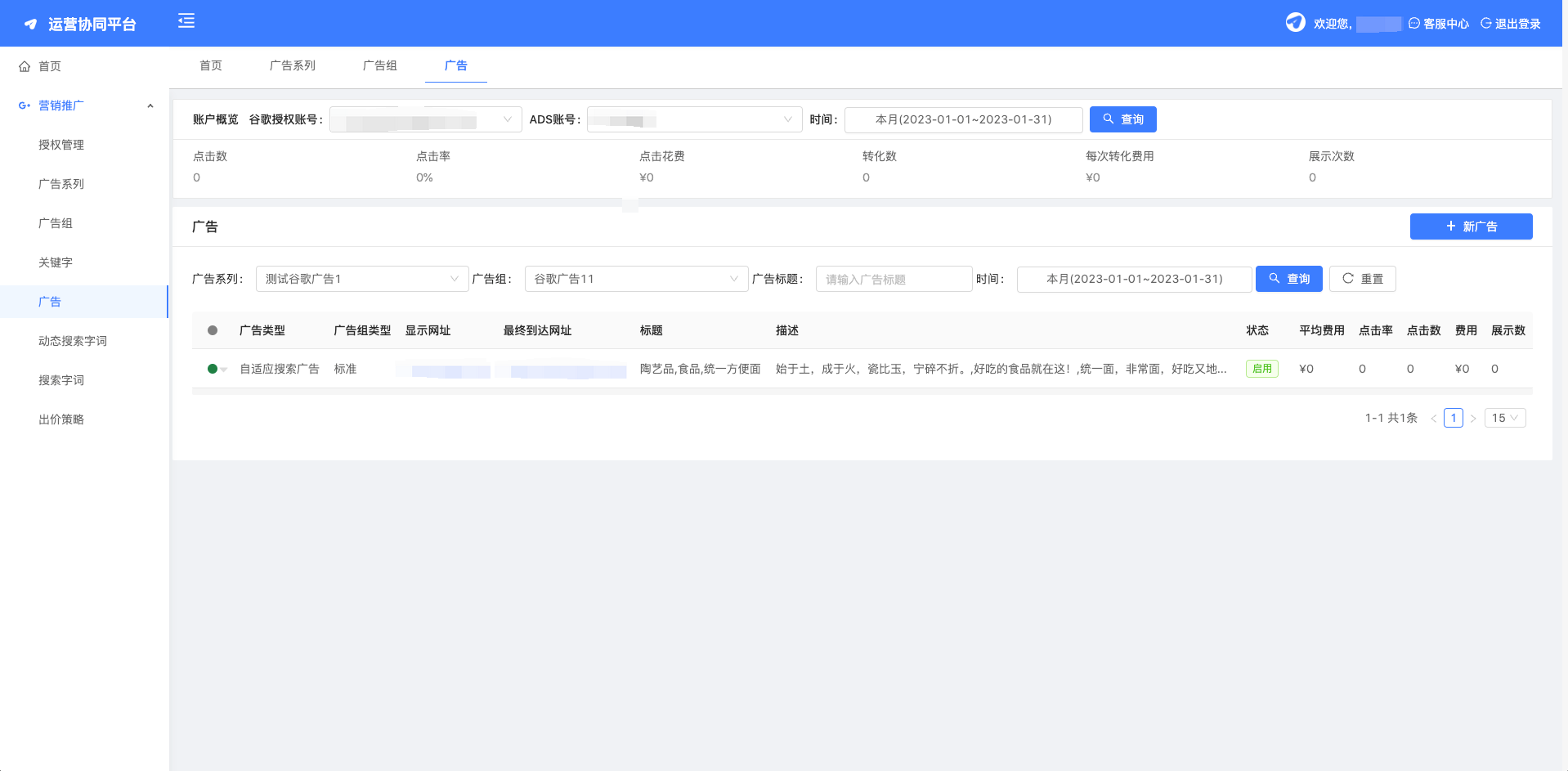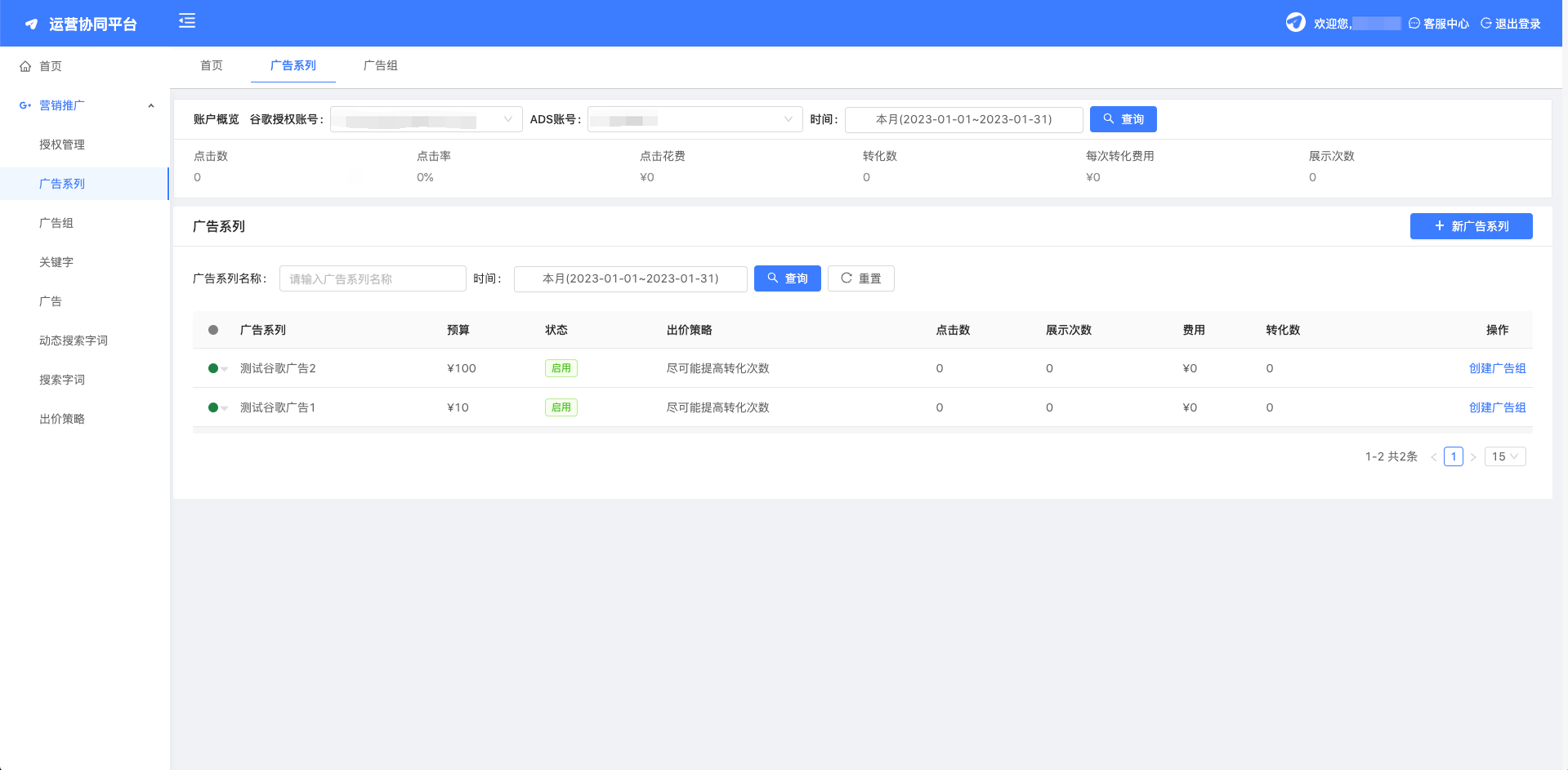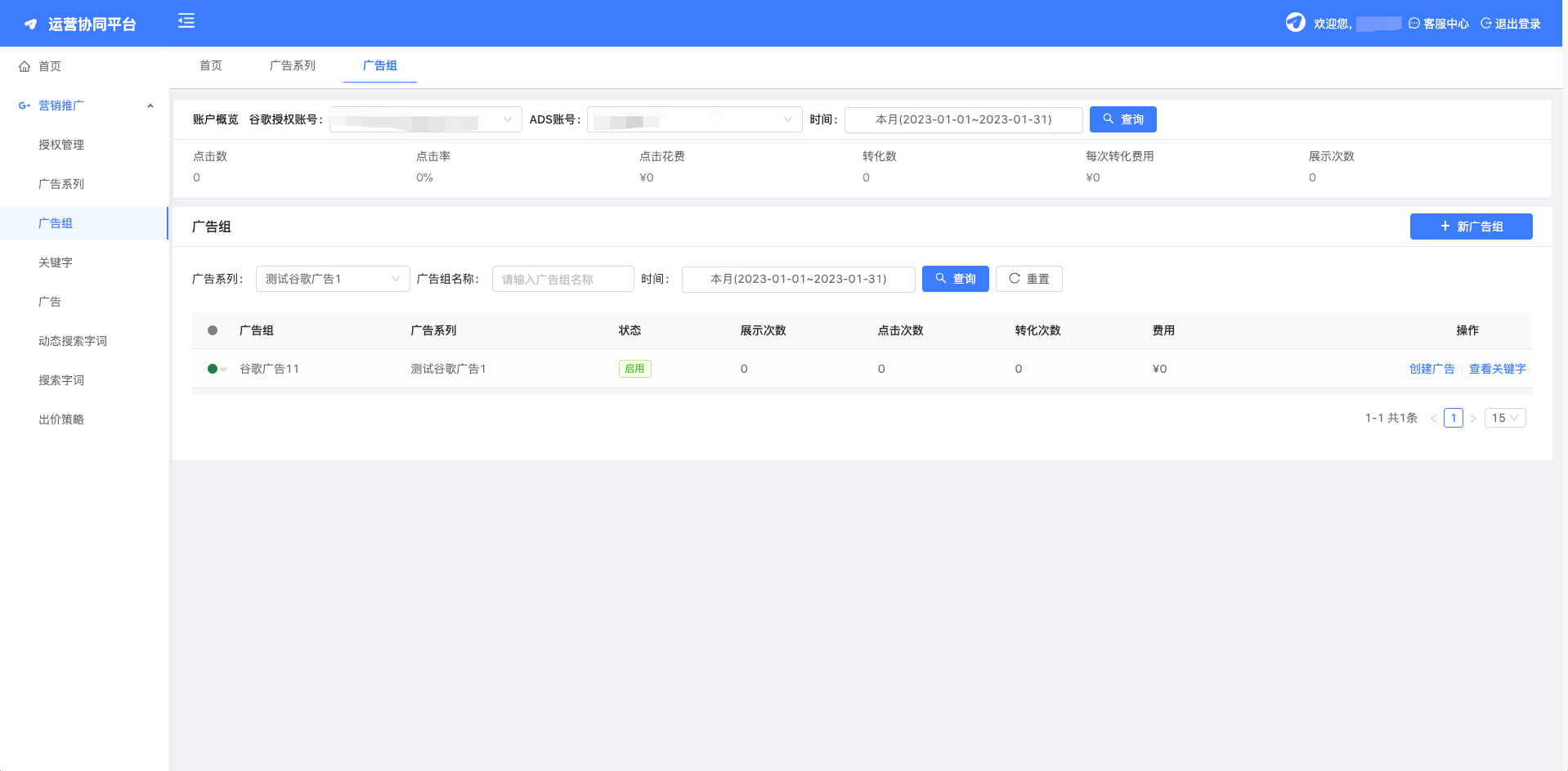- 每个广告系列由一个或多个广告组构成。
